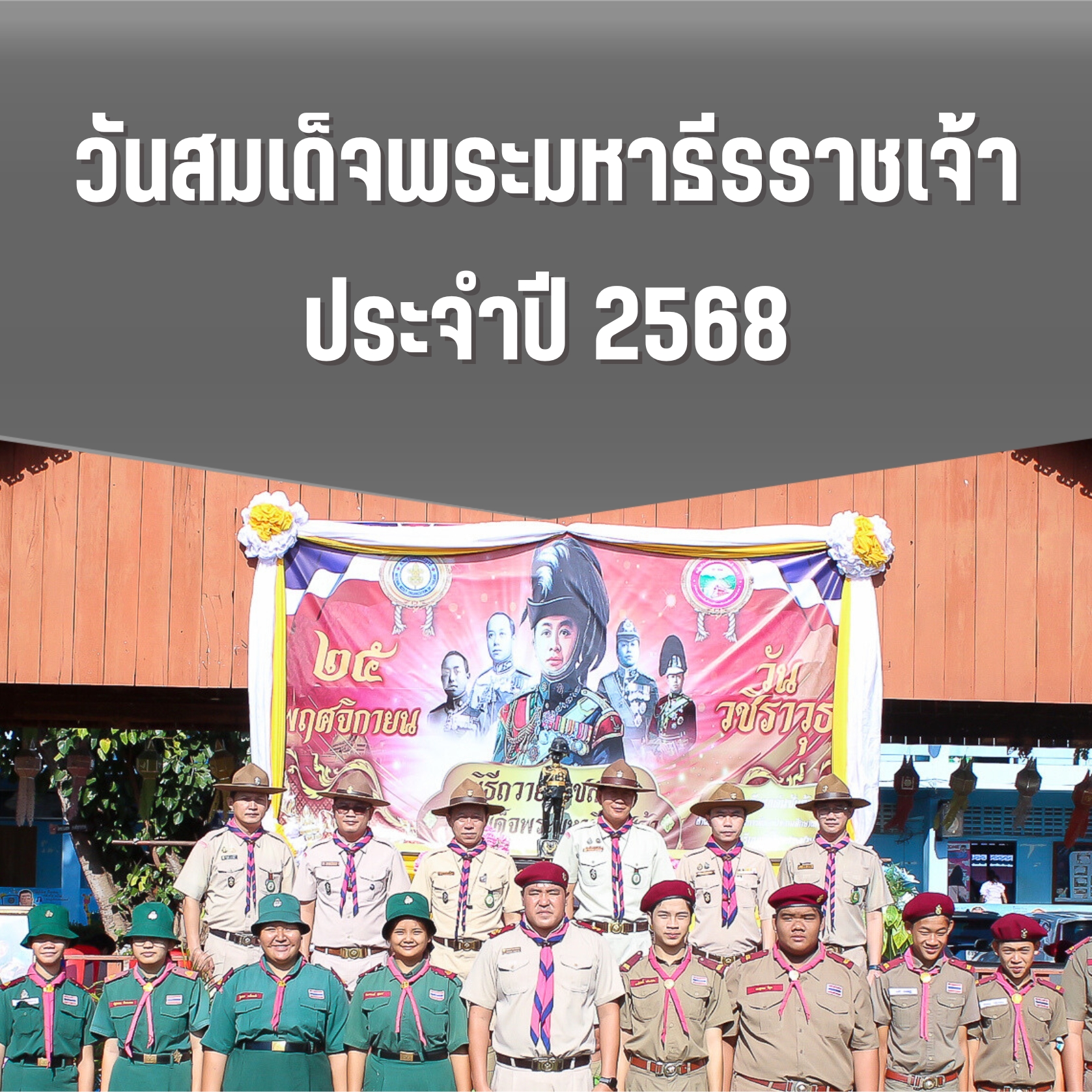 วันที่ 25 พฤศจิกายน 2568 เวลา 09.00 – 10.00 น. ผู้อำนวยการลูกเสือ ผู้กำกับ รองผู้กำกับลูกเสือสามัญรุ่นใหญ่ และลูกเสือเนตรนารีสามัญรุ่นใหญ่ โรงเรียนชุมชนบ้านปงป่าหวาย ร่วมกิจกรรมวันสมเด็จพระมหาธีรราชเจ้า เพื่อน้อมรำลึก ในพระมหากรุณาธิคุณพระบาทสมเด็จพระมงกุฎเกล้าเจ้าอยู่หัว (รัชกาลที่ 6) ณ โรงเรียนเด่นไชยประชานุกูล