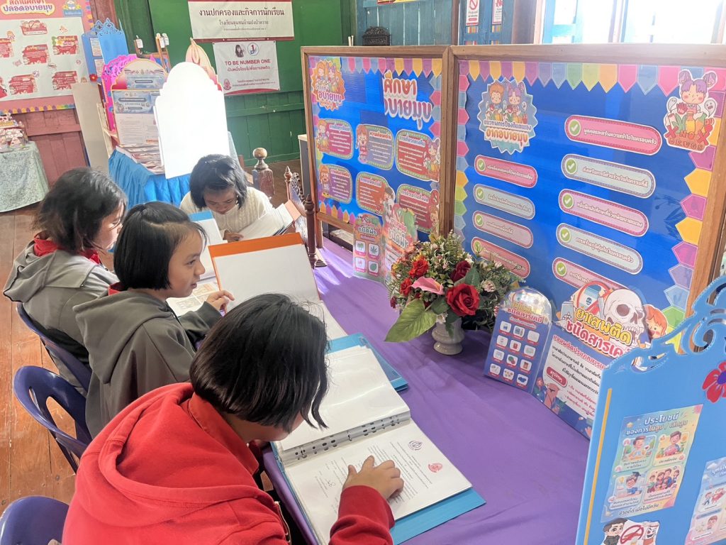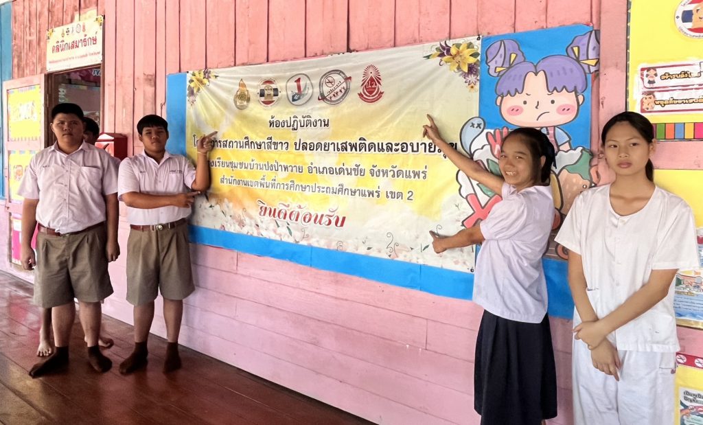 โรงเรียนชุมชนบ้านปงป่าหวาย ได้จัดตั้งศูนย์การเรียนรู้โครงการสถานศึกษาสีขาว ปลอดยาเสพติดและอบายมุข